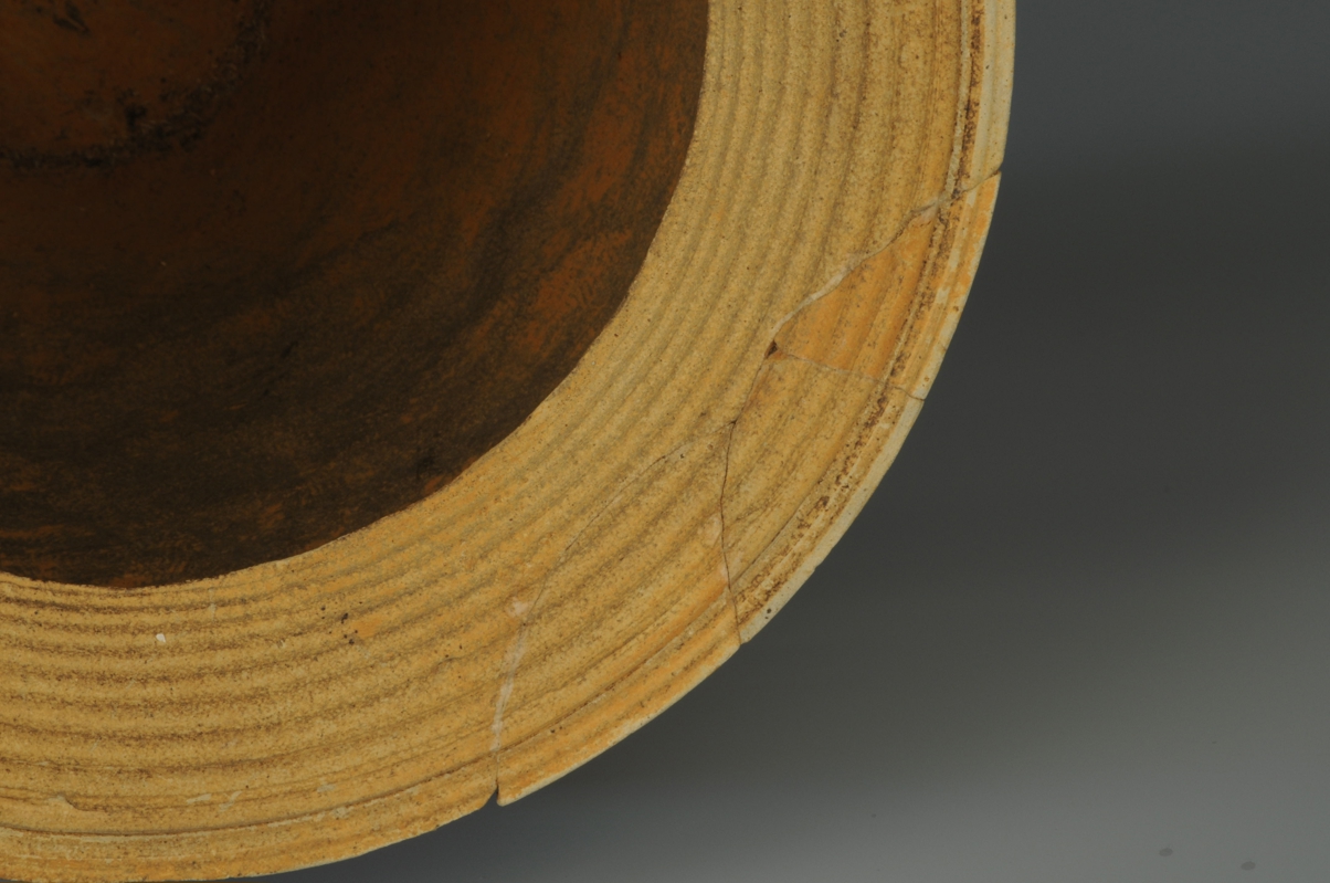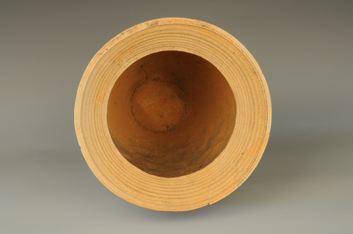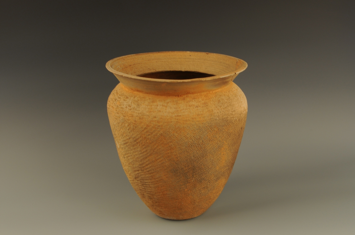 灰陶质,敞口,平折沿,尖圆唇,溜肩,圜底微凹,器口内壁饰多重弦纹,肩腹部有拍印的梳齿纹,通体无釉。该器物年代久远,造型古朴,纹样清晰,具有鲜明的时代特征,将抚州市有文字记载的历史从东汉和帝永元八年(公元96年)上溯到商代晚期。