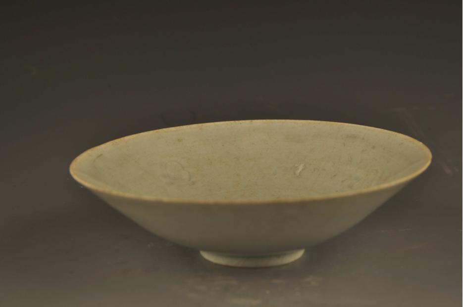 形态特征:敞口,深弧壁,矮圈足,碗内壁满划云龙纹饰,通体施青白釉。