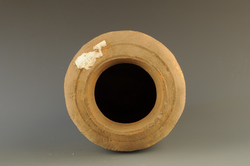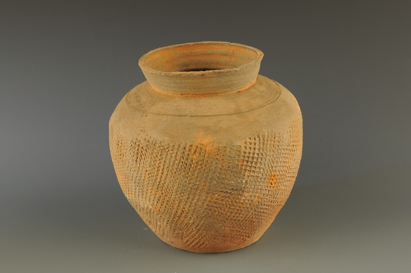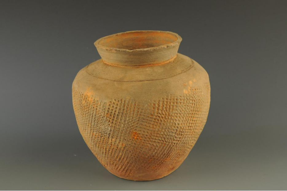 形态特征:侈口,束颈,丰肩,平底。圆腹,肩部饰一道弦纹,腹部饰拍印的方格纹,胎质坚硬。87年抚北镇东汉墓葬出土。