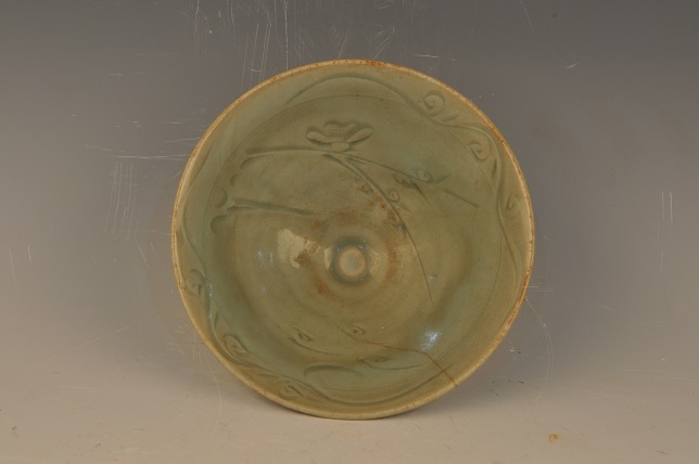 元龙泉窑青釉划花斗笠碗