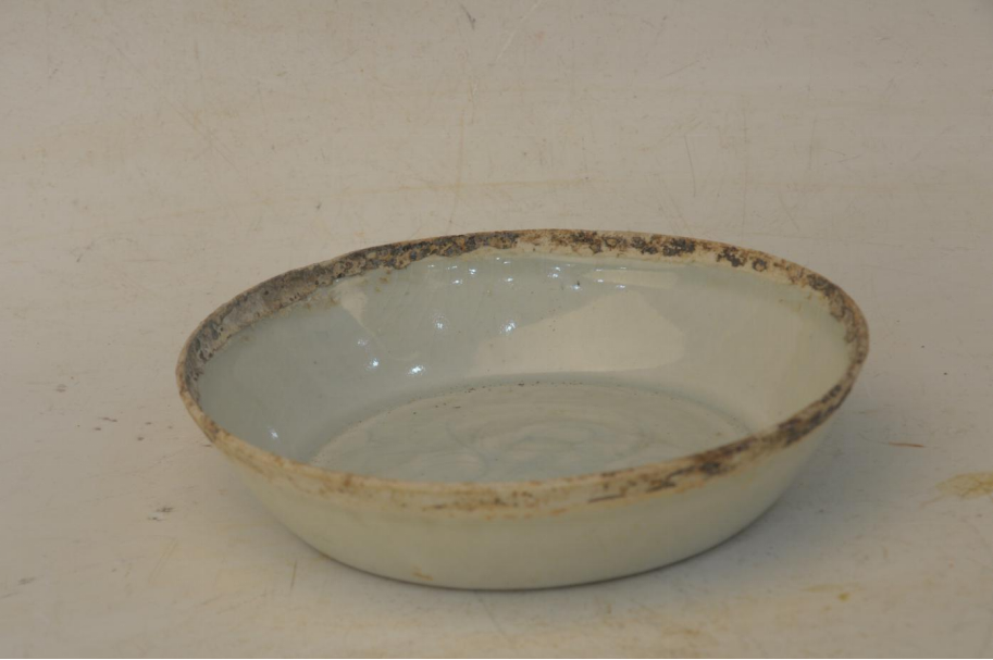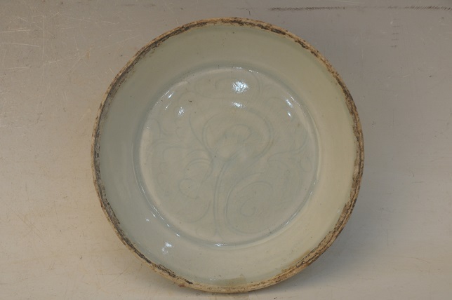 宋青白釉划牡丹纹芒口碟
