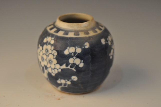 清青花蓝地梅花纹敛口罐