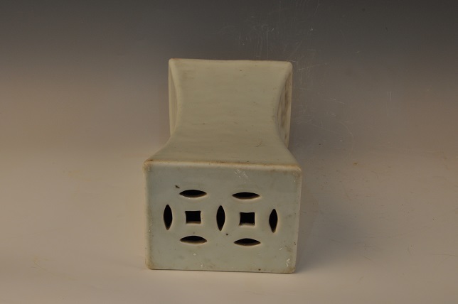清白釉镂雕钱纹长方形枕