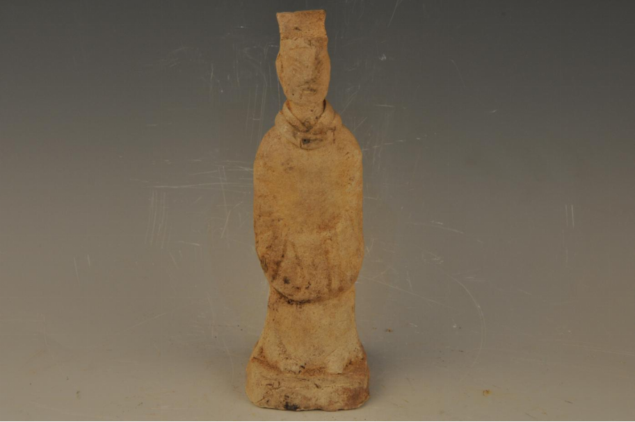 宋戴帽双手拢袖男陶俑