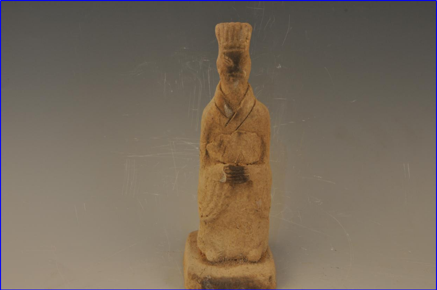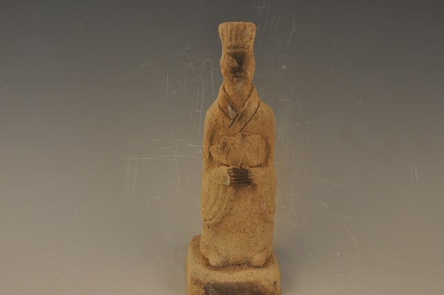 宋戴帽双手捧物男陶俑