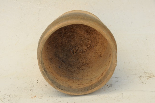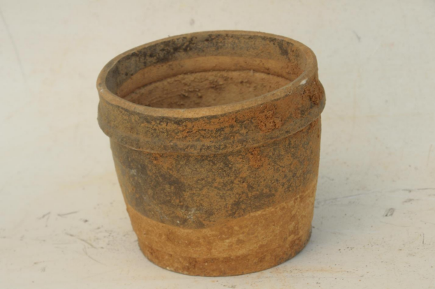 宋褐釉弦纹方唇筒形罐