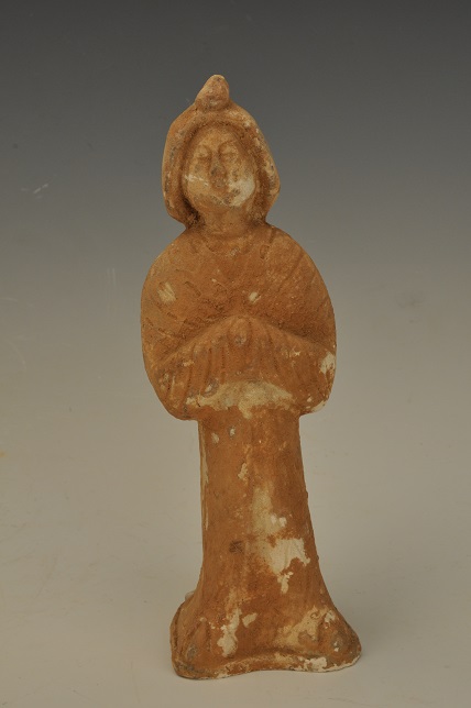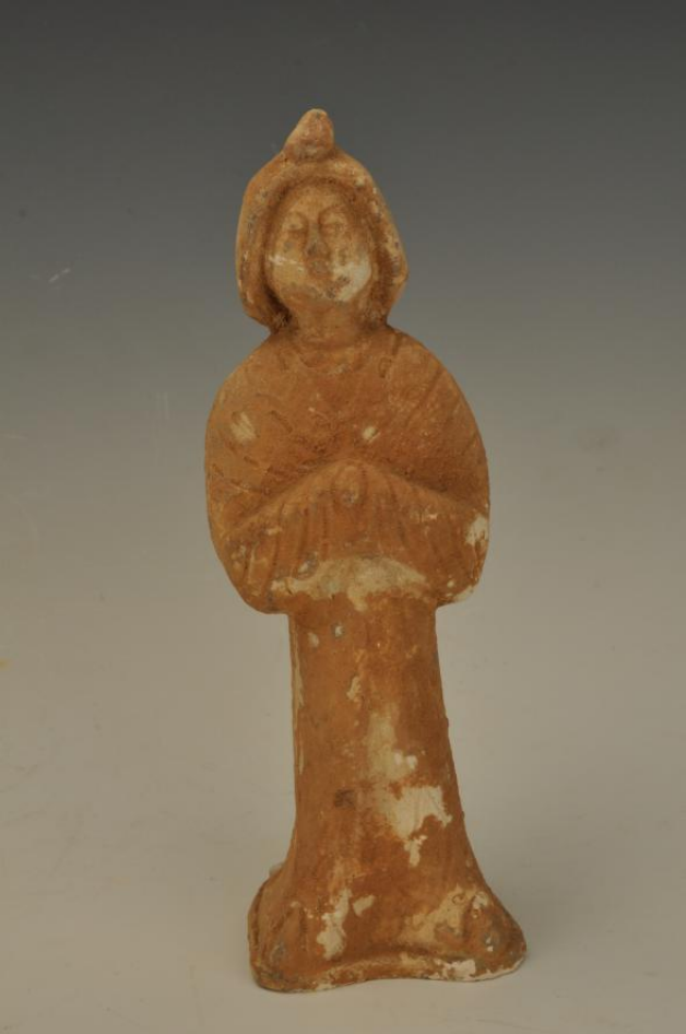 宋戴帽拱手立人女陶俑