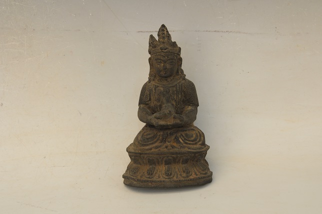 清双手捧物胸盘腿莲台铜佛像