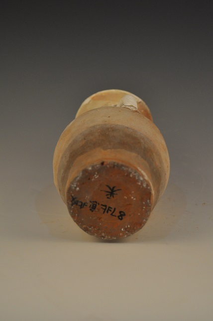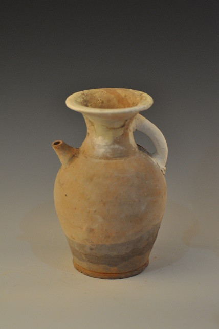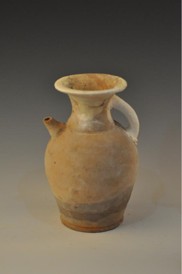 唐青釉喇叭口短流执壶