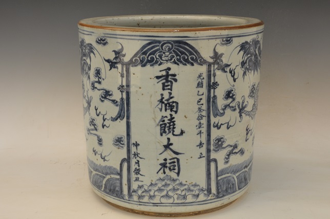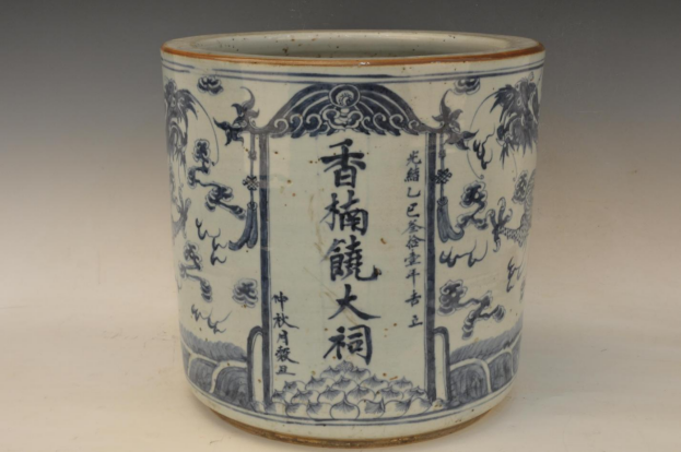 清香楠饶大祠款青花龙纹筒形香炉