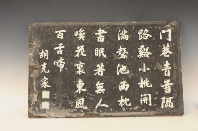 清嵌白釉瓷字胡克家行书七言诗木挂屏