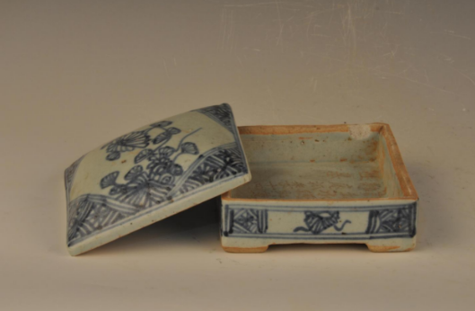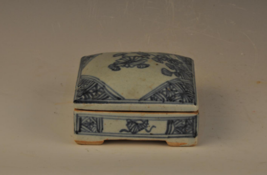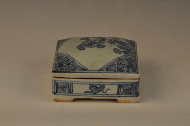 清乾隆刻墓主铭文青花折枝花方形盖盒
