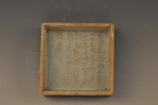 清乾隆刻墓志铭文青花折枝花方形盖盒,盒内刻墓主墓志铭文。