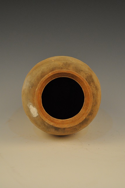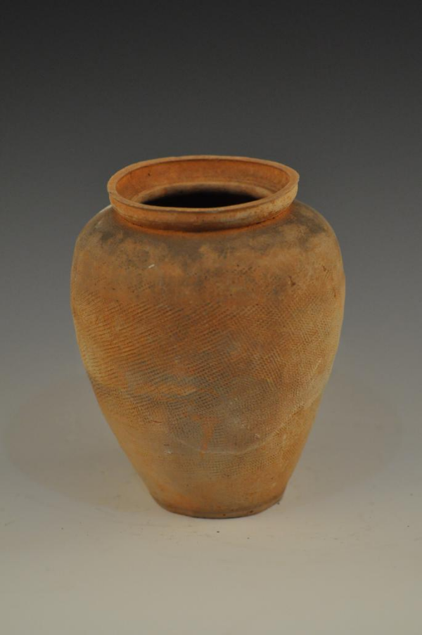 东汉方格纹侈口束颈陶罐