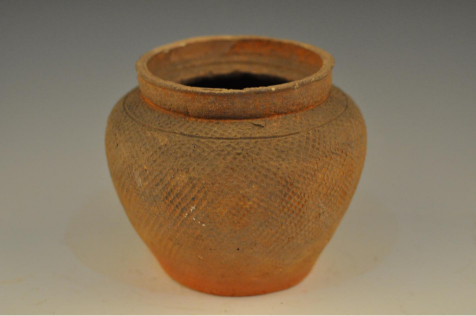 东汉青釉方格纹侈口罐