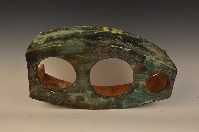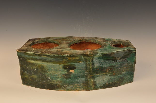 东汉绿釉船型三孔陶灶