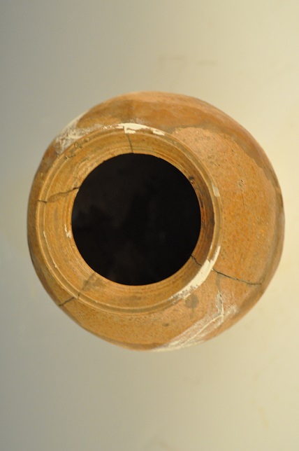 东汉褐釉方格纹束颈罐
