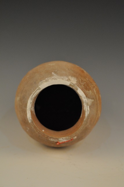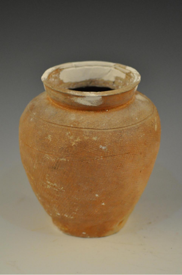 东汉方格纹侈口束颈陶罐