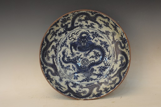 清雍正年制款青花云龙纹盘