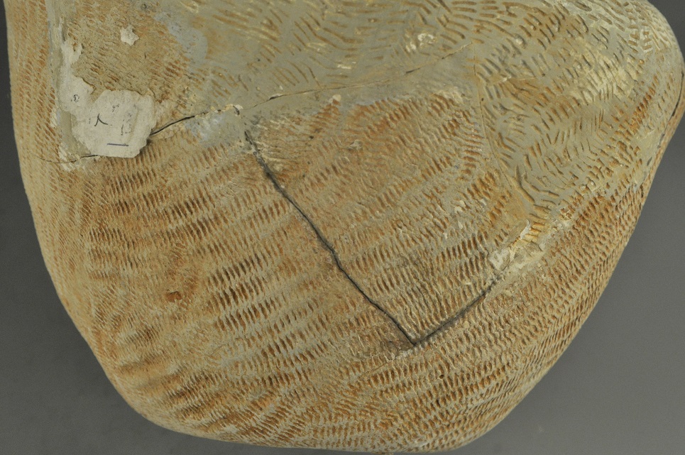 形态特征:侈口,方唇,束颈,平肩,肩以下渐收至底,平底。肩及腹部满饰拍印的绳纹。