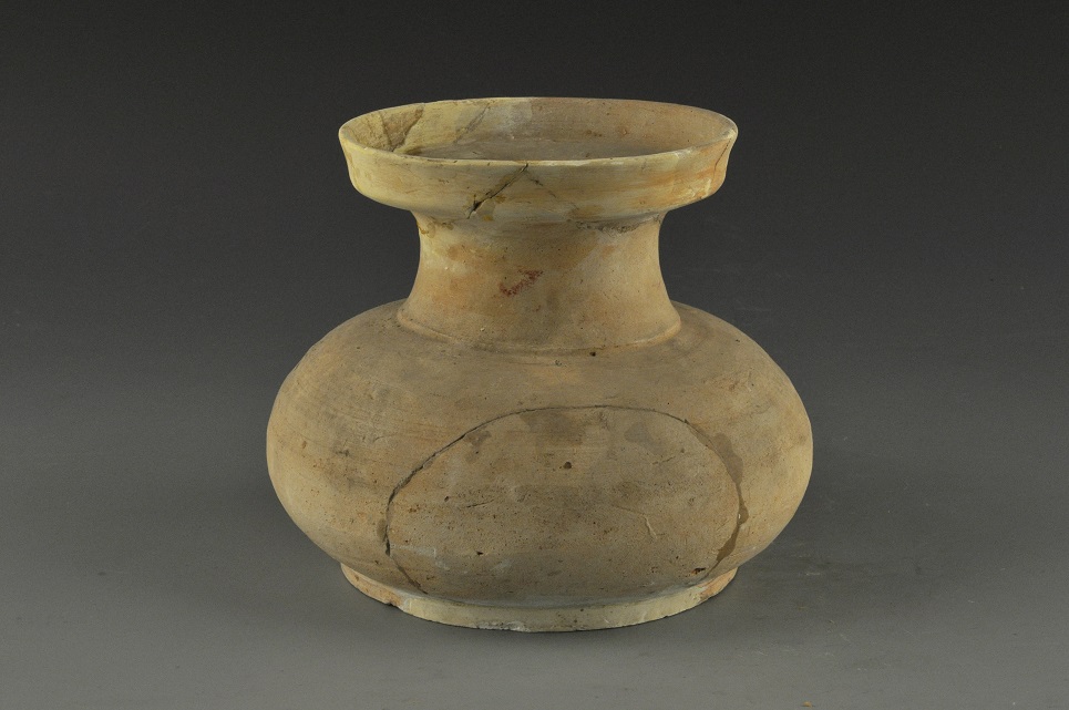 形态特征:盘口,短颈,溜肩,扁圆腹,圈足,整体造型端庄规整,古朴典雅,素胎。