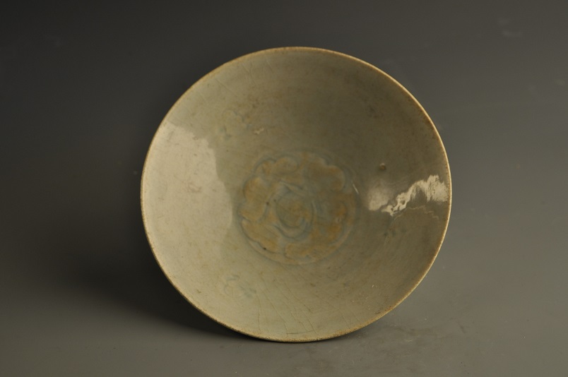 形态特征:敞口,深弧壁,矮圈足,碗内壁满划云龙纹饰,通体施青白釉。