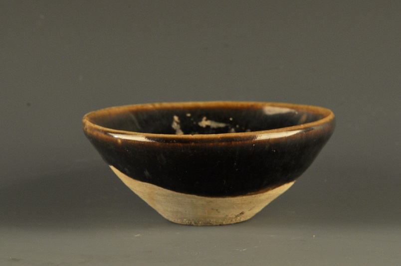 形态特征:侈口,斜腹下微收,平底,胎厚,内外壁均施黑釉,釉不及底。