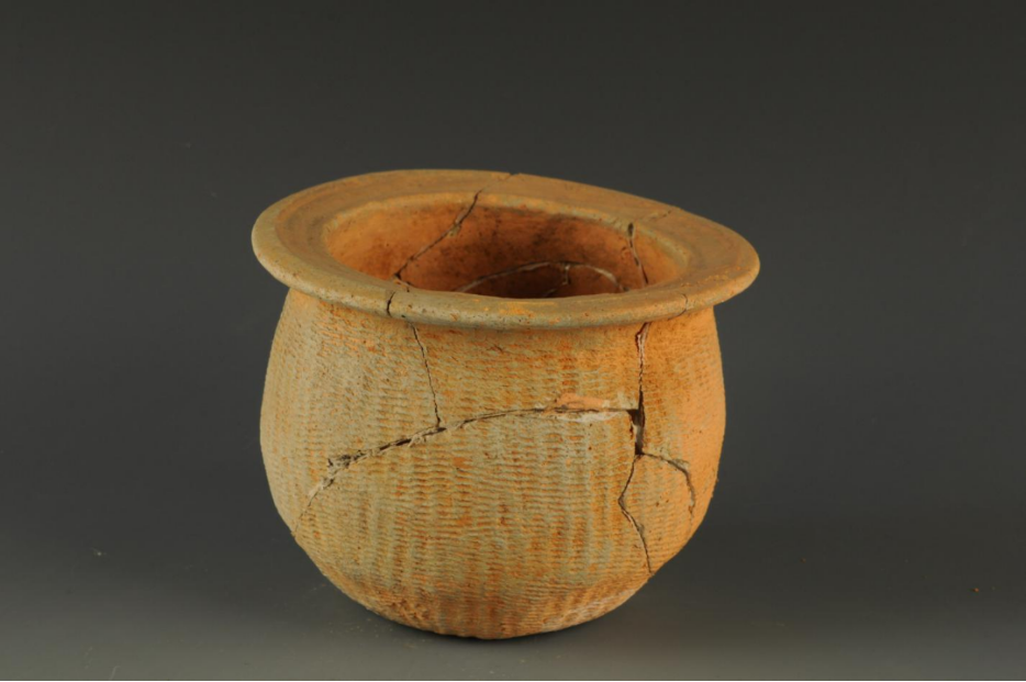 商拍印绳纹折沿陶罐