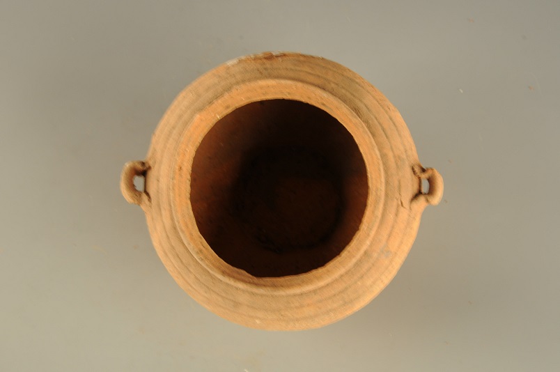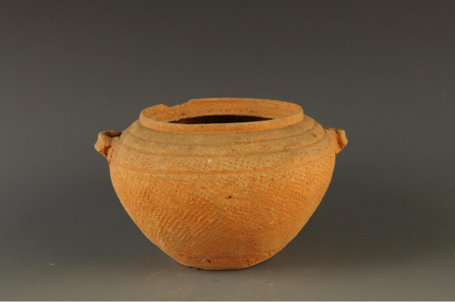 形态特征:直口,丰肩,圆腹,平底。肩部对应各置一条形系,并饰多重弦纹。器腹部饰拍印的网格纹,1989年抚北镇西晋墓葬出土时口沿残破