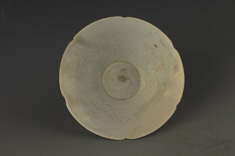 形态特征:葵口,腹向内斜收,圈足。由于造型似斗笠,故又称斗笠碗,碗内外壁均施青白釉,碗内壁满刻卷草花卉纹饰。