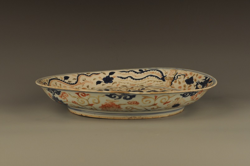 民国仿明万历青花五彩龙凤纹盘